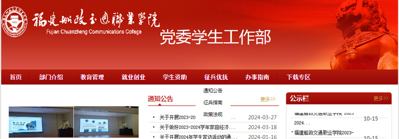 图5 福建船政交通职业学院学生就业、参军信息栏