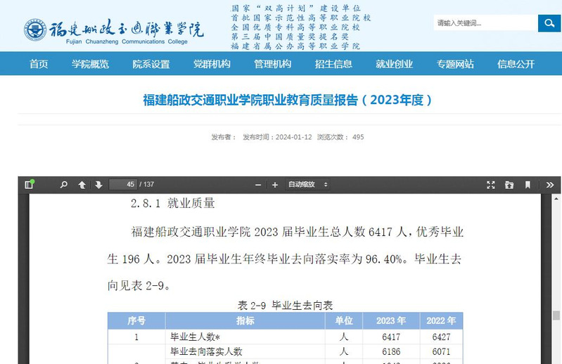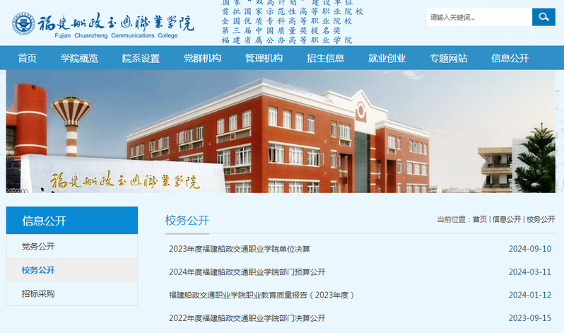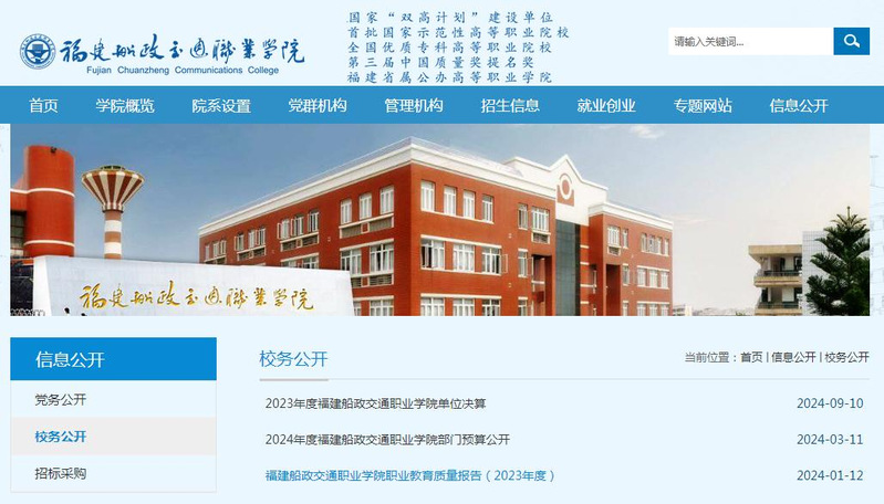 2023-2024学年,福建船政交通职业学院深入贯彻落实《中华人民共和国政府信息公开条例》《高等学校信息公开办法》等文件精神,遵照《教育部办公厅关于做好2024年高校信息公开年度报告工作的通知》等文件要求,开展信息公开工作并编制本年度报告。
