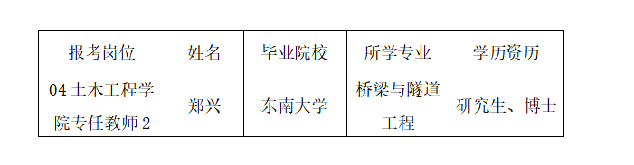 按照《关于印发<福建省省属事业单位公开招聘工作人员考试暂行办法>的通知》(闽人发〔2006〕11号)和《2024年福建船政交通职业学院专项公开招聘总量控制高层次人才方案(二)》等文件要求,经报名、资格审查、面试、考察、体检等有关程序,经学校党委会议研究,确定郑兴为04土木工程学院专任教师2拟聘用人员,现予以公示。