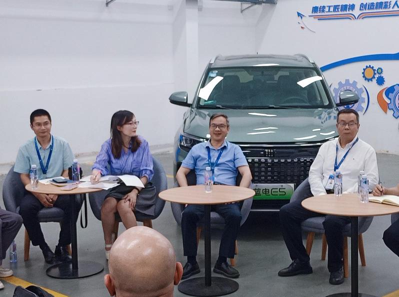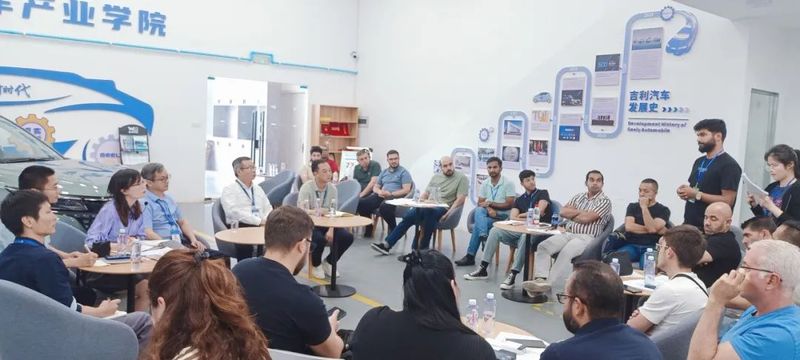 5月12日,学院党委书记陈宜大、副院长陈常晖来到新能源汽车产教融合示范园,同正在学习的外籍友人们座谈,现场询问了此次培训班的课程安排,关心了学员的培训、生活情况。相关职能部门负责人陪同参加。