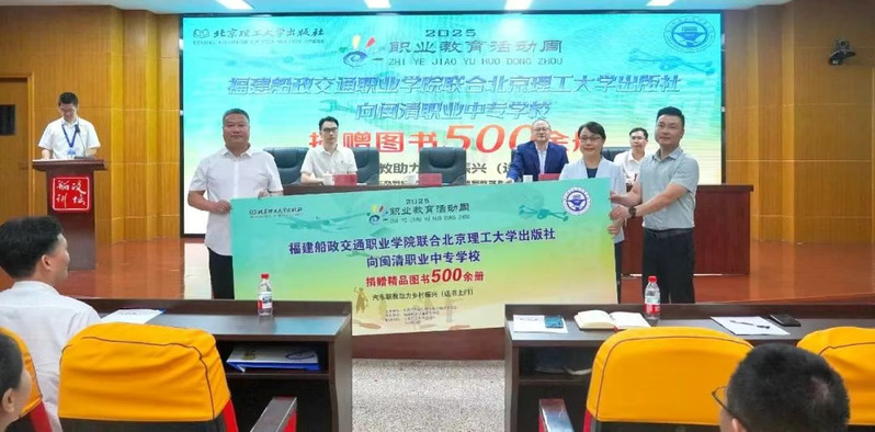 作为活动亮点,福建船政交通职业学院联合北京理工大学出版社向闽清职业中专学校捐赠图书500余册。此次捐赠涵盖新能源汽车技术、智能制造、职业素养教育等前沿领域专业教材,以及《大国工匠精神解码》《职业行为训练手册》等特色读本,精准对接县域职校专业建设需求。