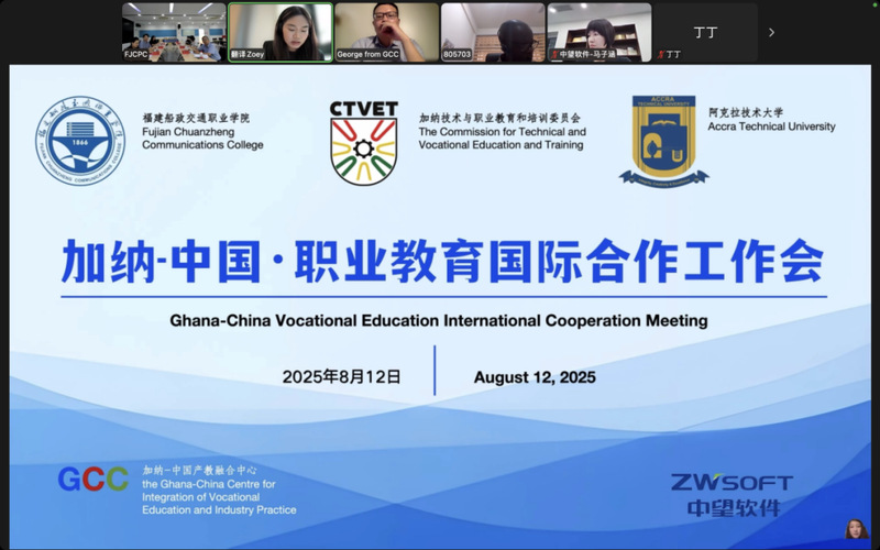 近日,我院与加纳阿克拉技术大学召开“职教出海”首次合作工作会议。会议由加纳教育部技能课程开发与评估中心主任Peter Boahin主持,加纳-中国产教融合中心主任郑凯歌、阿克拉技术大学常务校长Engr.Prof. Amevi Acakpovi、学院副院长陈常晖、中望软件业务总监于敖出席会议,阿克拉技术大学工程学院院长、我院土木工程学院院长、中望软件相关工作人员及双方学校教师代表参加了此次会议。