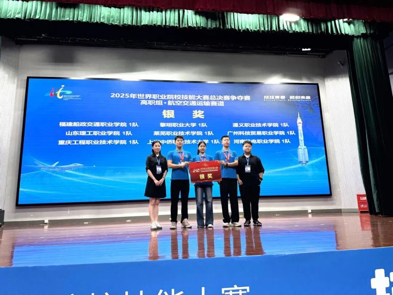 2025年8月21日至27日,世界职业院校技能大赛航空交通运输赛道(高职组)总决赛在成都航空交通职业大学成功举办。我院通用航空产业学院学子凭借扎实的专业技能、出色的团队协作与顽强的拼搏精神,在与来自全国90所职业院校的350余名选手激烈角逐中脱颖而出,勇夺银奖。