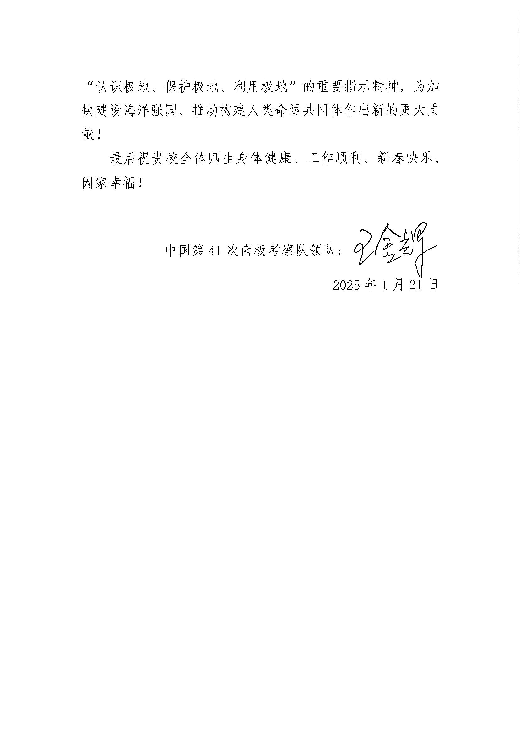 近日,远在南极执行科学考察任务的中国第41次南极考察队向我校发来春节贺电,感谢我校对极地事业的长期关心和大力支持,并向全校师生致以诚挚的节日问候!