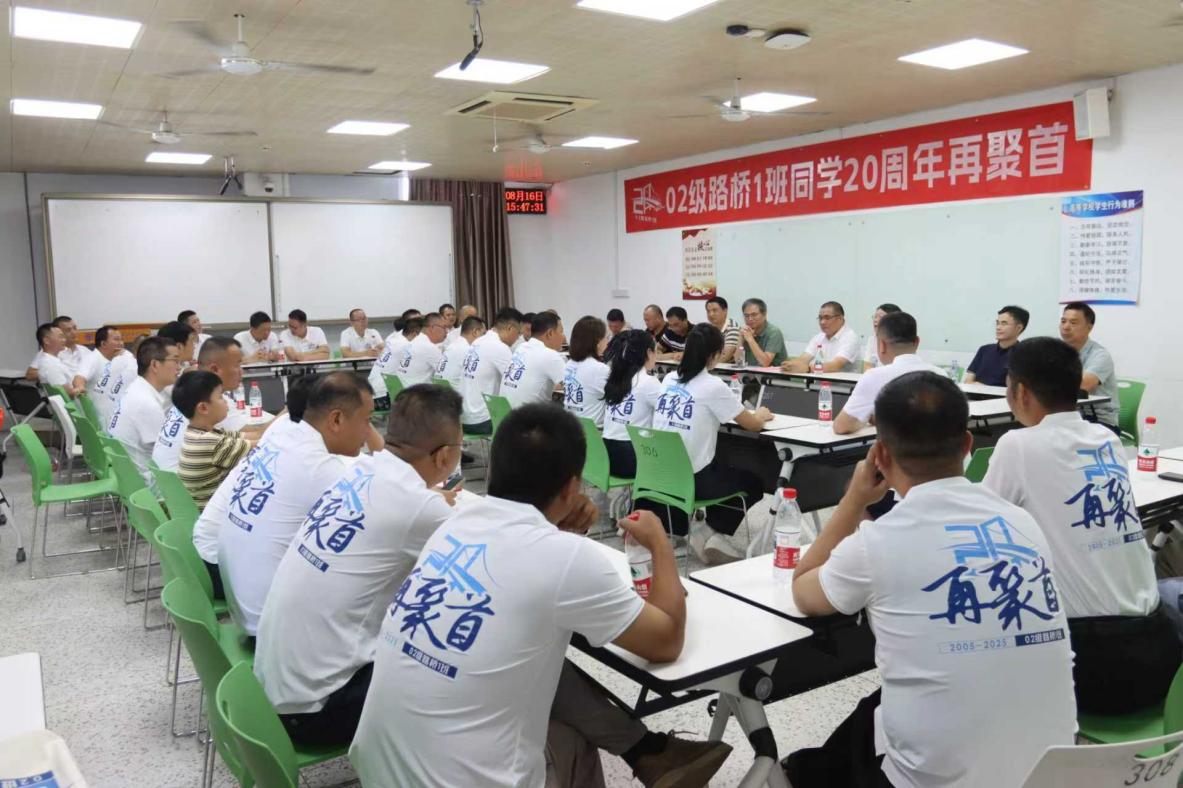2025年8月16日,福建船政交通职业学院土木工程学院2002级公路与桥梁1班毕业20周年返校活动温情举行。来自全国各地的38名校友重返母校,共叙同窗情谊,见证母校发展。全班43名同学中,实际返校率达到88%,充分体现了校友对母校深厚的归属感与凝聚力。