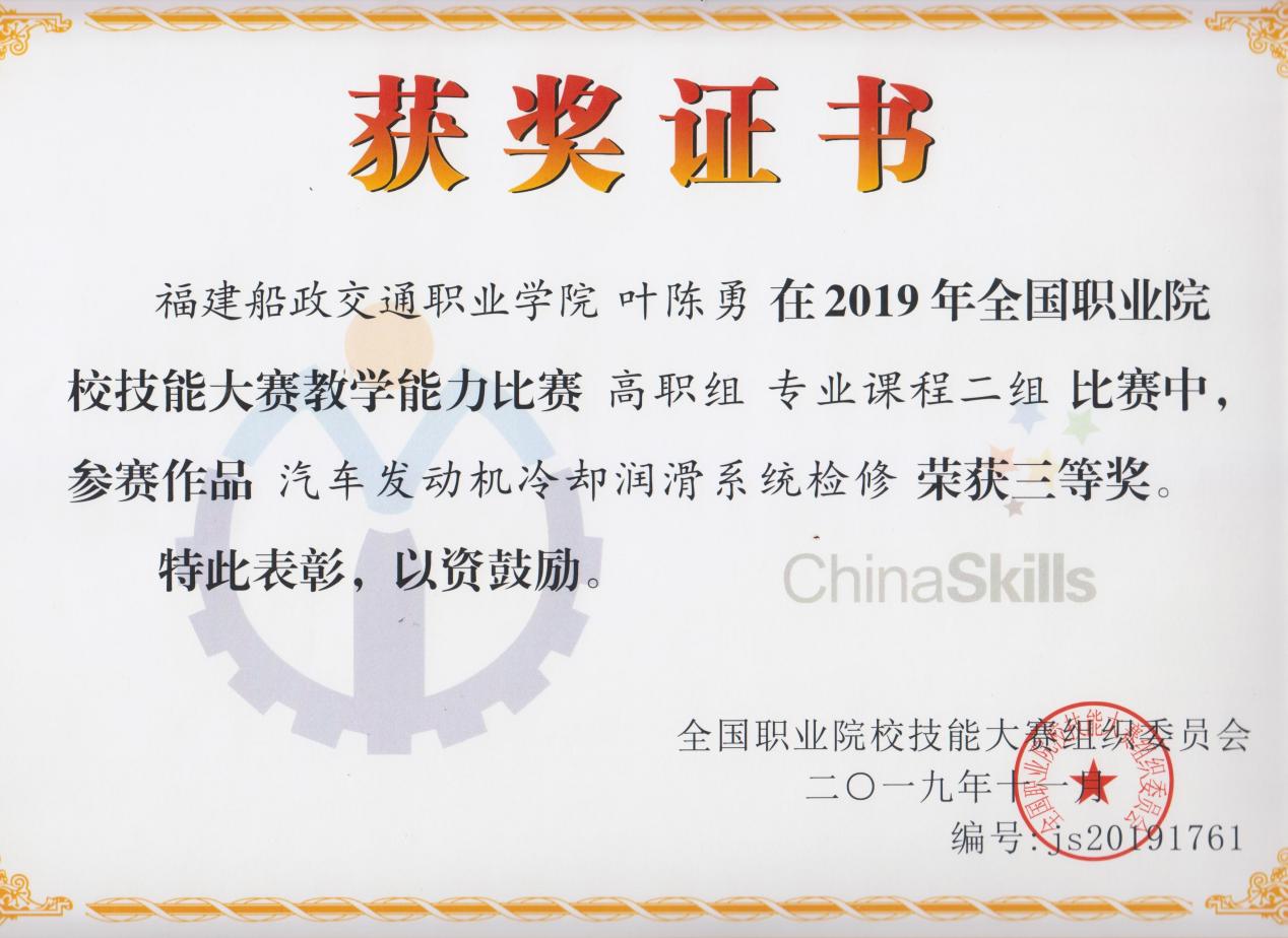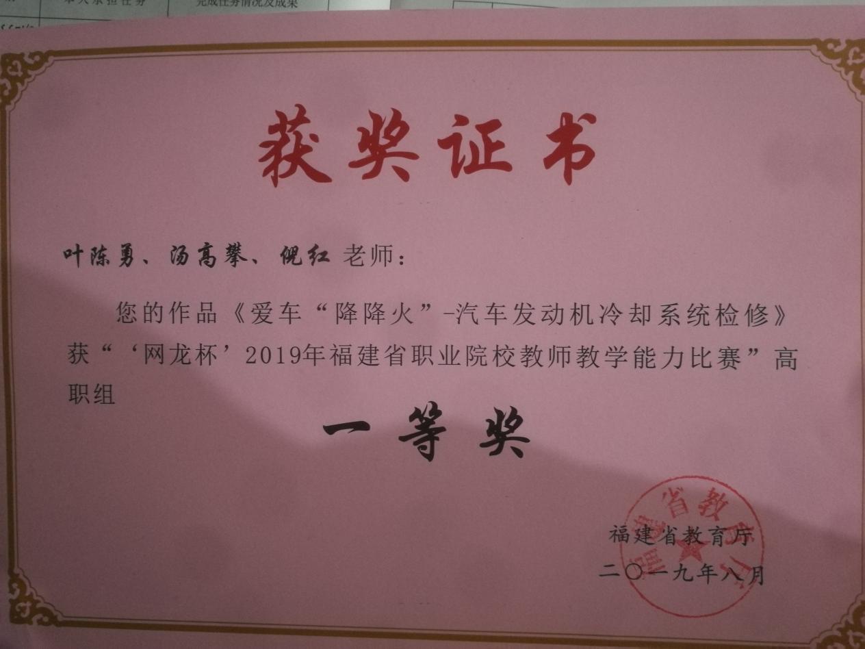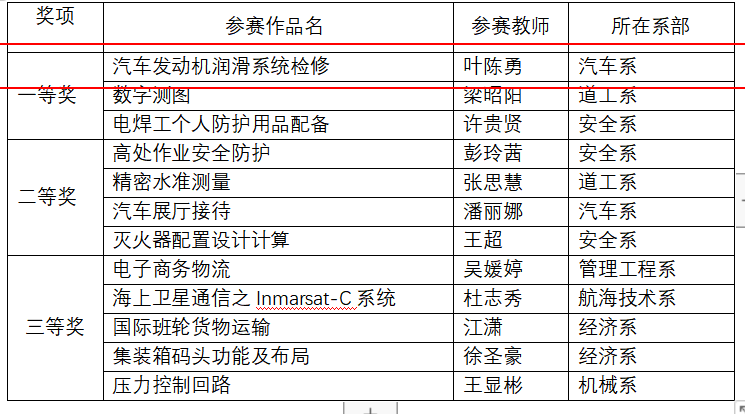 (九)2017-2020年连续被福建船政交通职业学院评为校教学能力比赛一等奖、二等奖。
