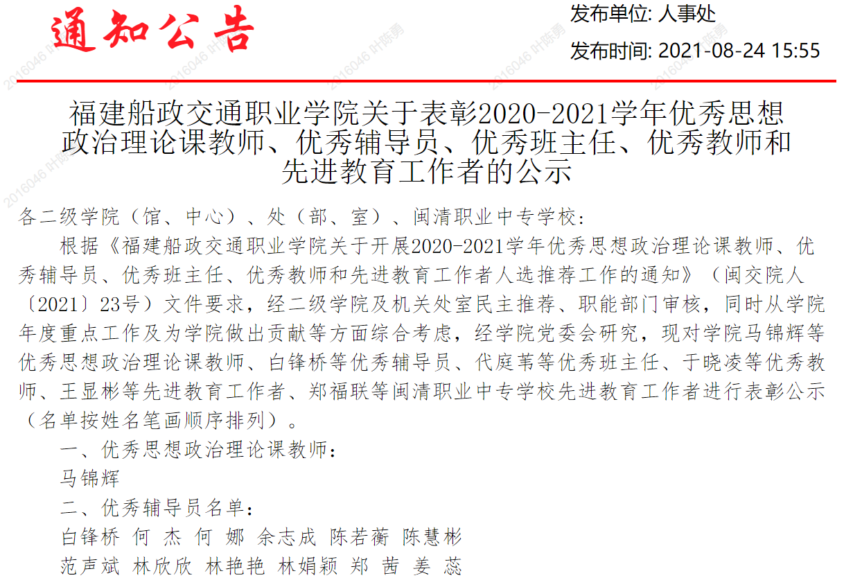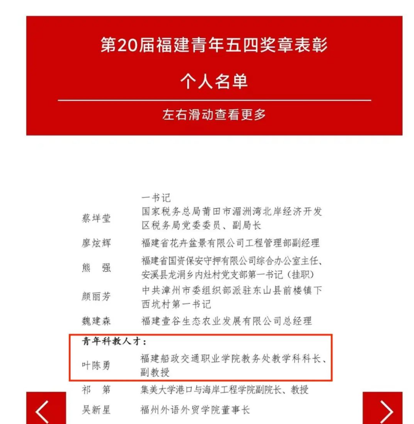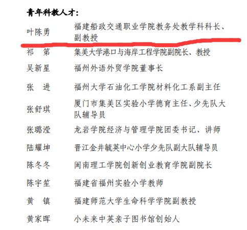 (八)2019-2023年被福建船政交通职业学院授予五四青年奖章、优秀共产党员、优秀教师、优秀教育工作者
