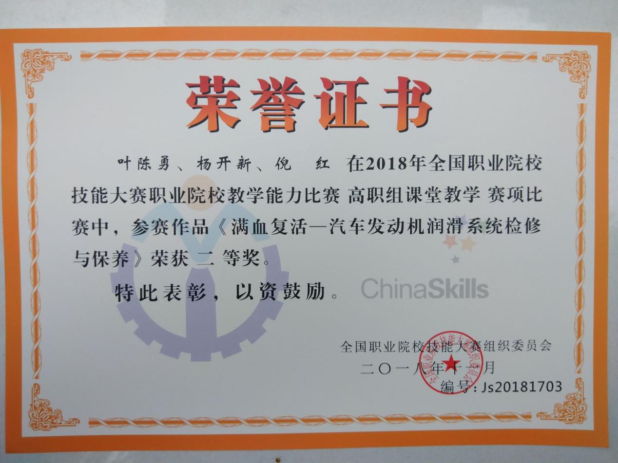 (三)2018、2019年11月被全国职业院校技能大赛组织委员会评为全国职业院校技能大赛教学能力比赛二等奖、三等奖