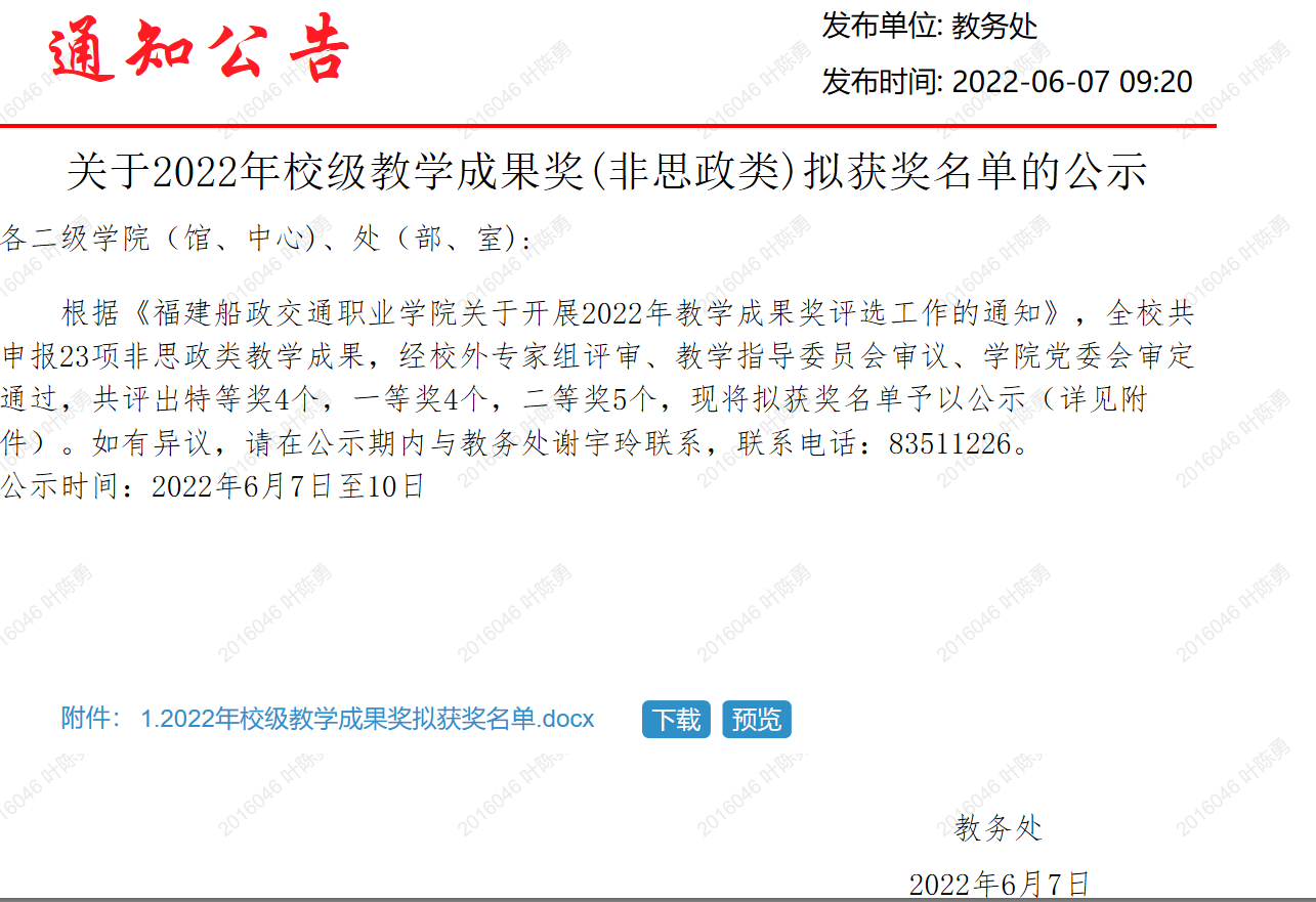 (十)2017-2022年被福建船政交通职业学院评为校教学成果奖一等奖、二等奖、二等奖