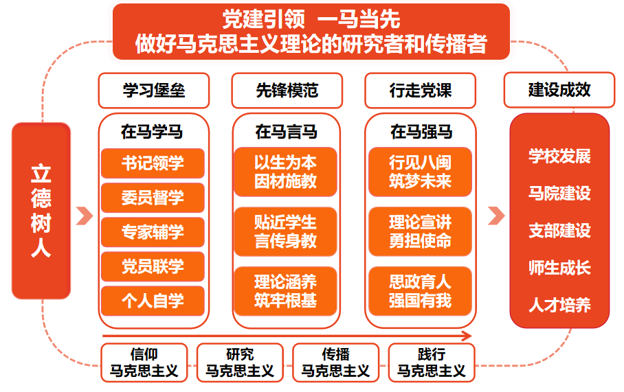 习近平总书记在学校思想政治理论课教师座谈会上的重要讲话中强调:“思政课要解决学生理想信念问题。要让有信仰的人讲信仰。对马克思主义的信仰,对社会主义和共产主义的信念,只有首先在思政课教师心中扎下根,才能在学生心中开花结果。”马克思主义学院第一党支部坚持以习近平新时代中国特色社会主义思想为指导,理直气壮地信仰马克思主义、研究马克思主义、传播马克思主义、践行马克思主义,发挥思政教师作为马克思主义理论学习者、研究者、传播者和实践者的专业优势,体现思政课程作为立德树人关键课程的地位,将党建的“软实力”转化为推动教育教学高质量发展的“硬支撑”,彰显党支部“在马学马、在马言马、在马强马”的工作格局。