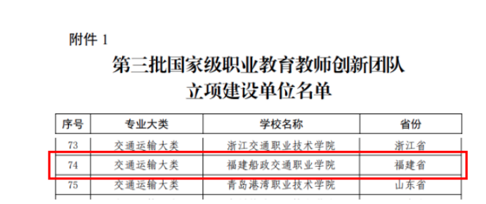 近日,教育部印发《关于公布第三批国家级职业教育教师创新团队立项(培育)建设单位名单的通知》,我院被确定为第三批国家级职业教育教师创新团队立项(培育)建设单位。