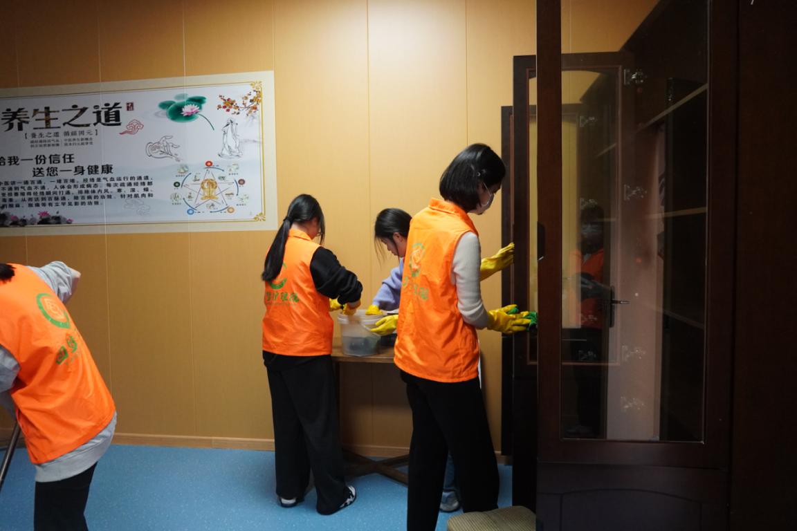 下午,志愿者们走进养老院,化身“清洁卫士”,分组清扫老人们的活动区域。擦拭窗户、整理床铺、消毒公共区域……每一处细节都倾注关怀。清洁之余,志愿者们围坐在老人身旁从经典老歌到热心对话,从回忆分享到笑声满堂。志愿者们为老人们编织了一段充满歌声与温情的午后时光。
