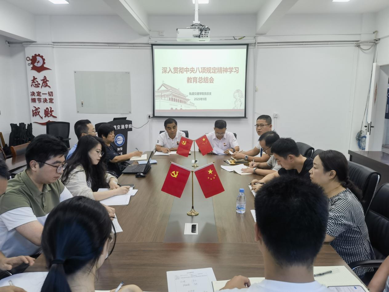 9月29日,轨道交通学院党总支召开深入贯彻中央八项规定精神学习教育总结会,学习贯彻习近平总书记关于深入贯彻中央八项规定精神学习教育重要指示精神和中央、省委党的建设工作领导小组会议精神,总结轨道交通学院学习教育开展情况,研究部署巩固拓展学习教育成果、锲而不舍落实中央八项规定精神、推进作风建设常态化长效化工作。学院党总支理论学习中心组(扩大)成员、师生代表出席会议。