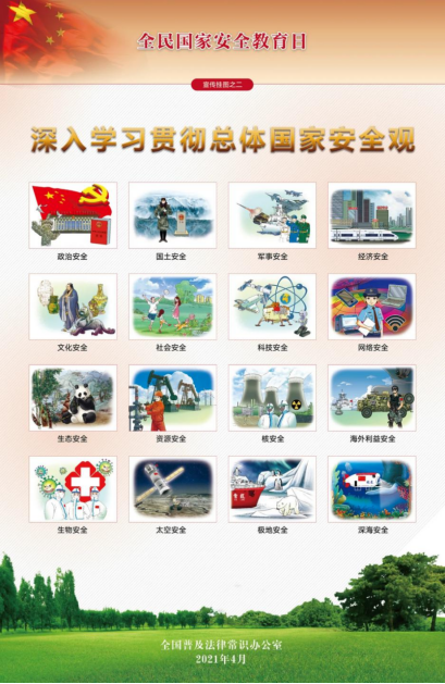 什么是全民国家安全教育日? 全民国家安全教育日(National Security Education Day),是为了增强全民国家安全意识,维护国家安全而设立的节日。2015年7月1日,全国人大常委会通过的《中华人民共和国国家安全法》第十四条规定,每年4月15日为全民国家安全教育日。 什么是国家安全? 根据《国家安全法》第二条规定: 国家安全是指国家政权、主权、统一和领土完整、人民福祉、经济社会可持续发展和国家其他重大利益相对处于没有危险和不受内外威胁的状态,以及保障持续安全状态的能力。 什么是坚持总体国家安全观 2014年4月15日,习近平总书记在中央国家安全委员会第一次全体会议上提出,坚持总体国家安全观,走出一条中国特色国家安全道路。首次提出总体国家安全观重大战略思想。这是以习近平同志为核心的党中央对国家安全理论的重大创新,是新形势下维护和塑造中国特色国家安全的行动指南,具有重大的理论意义、时代意义、实践意义。 总体国家安全观的五大要素 1.以人民安全为宗旨 2.以政治安全为根本 3.以经济安全为基础 4.以军事、文化、社会安全为保障 5.以促进国际安全为依託 贯彻落实总体国家安全观,做到十个重视(五对关系) 1.既重视外部安全、又重视内部安全 2.既重视国土安全、又重视国民安全 3.既重视传统安全、又重视非传统安全 4.既重视发展问题、又重视安全问题 5.既重视自身安全、又重视共同安全