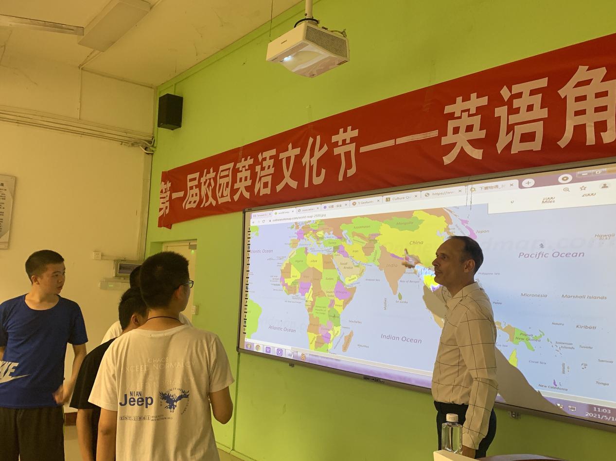 5月16日上午,我校第一届校园英语文化节外教交流日在同学们的热切期盼中如期举办,共有100多名学生报名参加。外教交流日分两期,首期以“Colorful Cultures in Different Countries”为主题,旨在让同学们识别、理解、尊重世界多元文化,拓宽国际视野,掌握跨文化知识,提高多元文化交流能力。