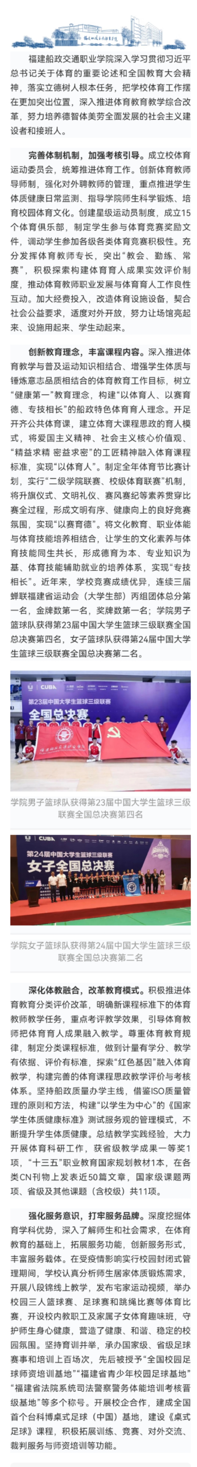 媒体声音|福建船政交通职业学院:体育教改促发展 育人服务显成效