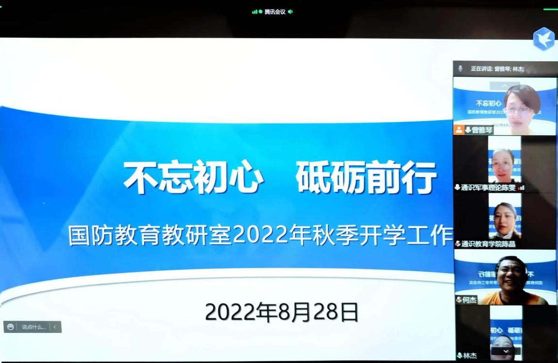 8月28日,国防教研室召开2022年秋季开学工作视频会议,部署2022年秋季学期工作重点。