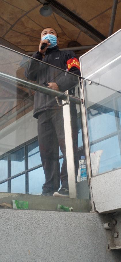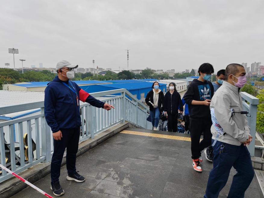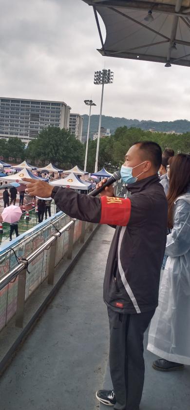 “请同学们保持一米间隔,打开健康码,把手机屏幕调亮”。每天,郭建忠在学院青春田径场(原名:北区田径场)协调校内全员核酸检测人员秩序,助力校内全员核酸检测高效有序进行。校内全员核酸检测结束后,郭建忠和章青松、校园保安一起整理青春体育场核酸检测现场。郭建忠说,“我们党员要从大局出发,积极服务学校疫情防控工作”。