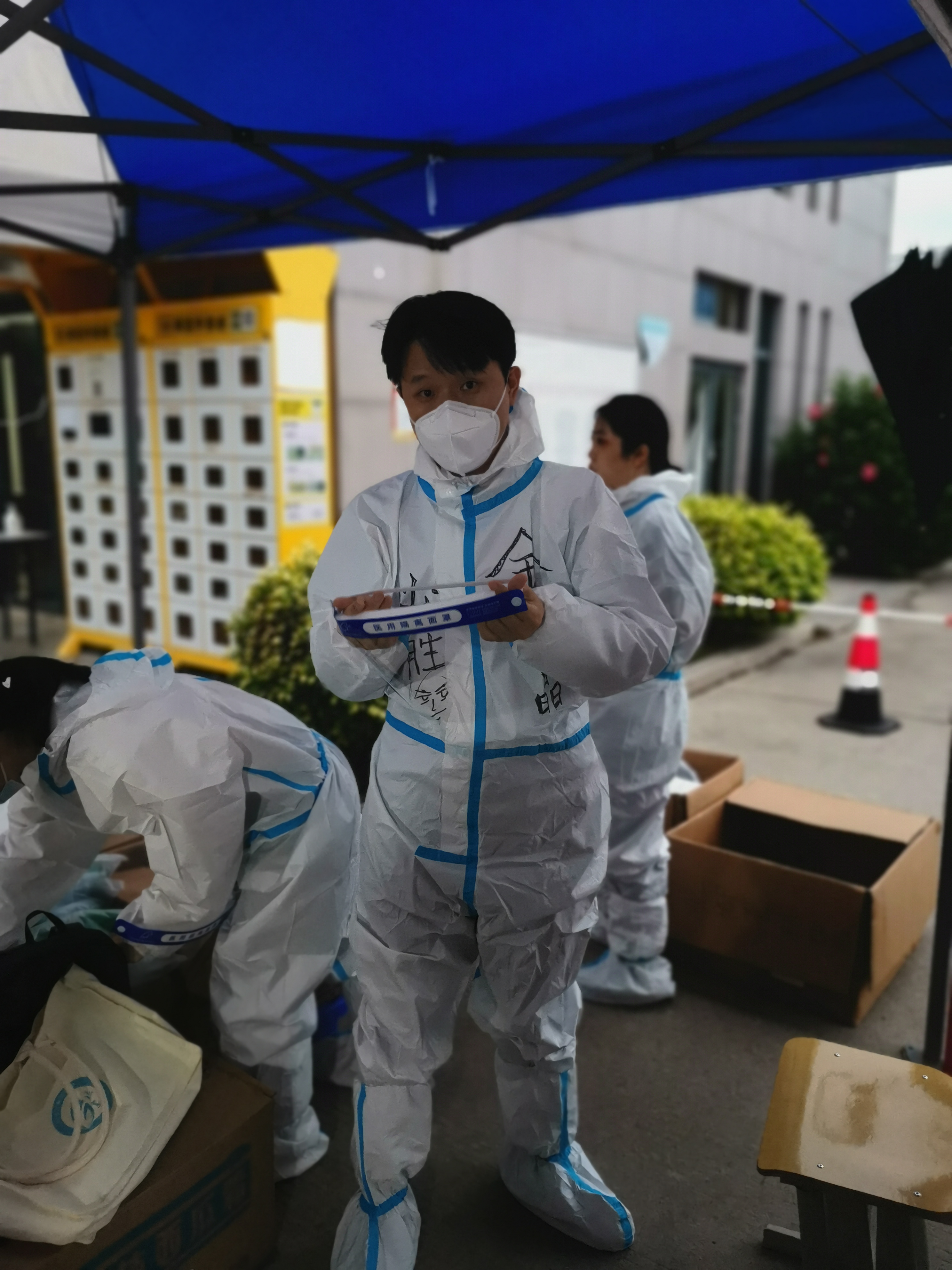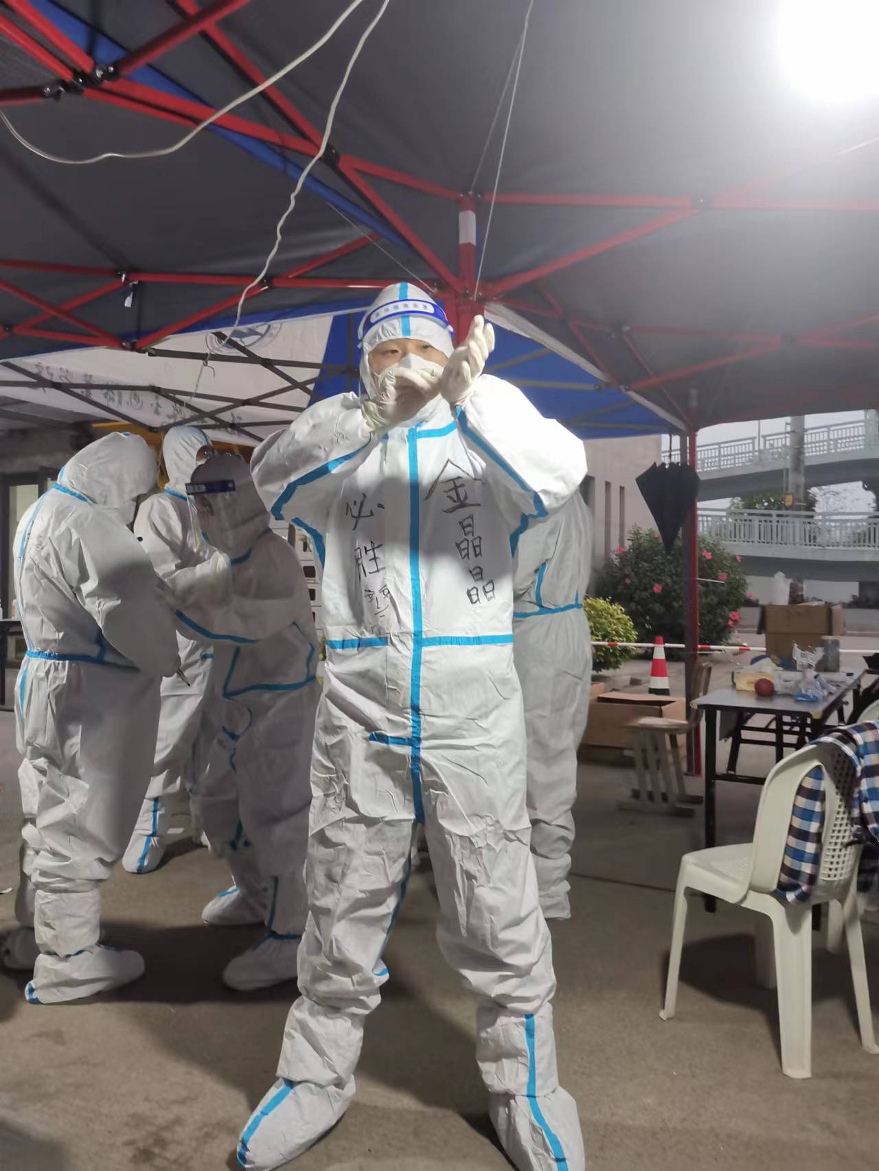 校园封闭管理期间,曾新平穿上防护服,化身“防护白”,听从指挥,支援校内全员核酸检测、学生宿舍管理等工作。从学生生活物资的配送,到核酸检测扫码,不辞辛苦,认真负责。曾新平说,“愿疫情早点结束,福州加油!船政加油!”