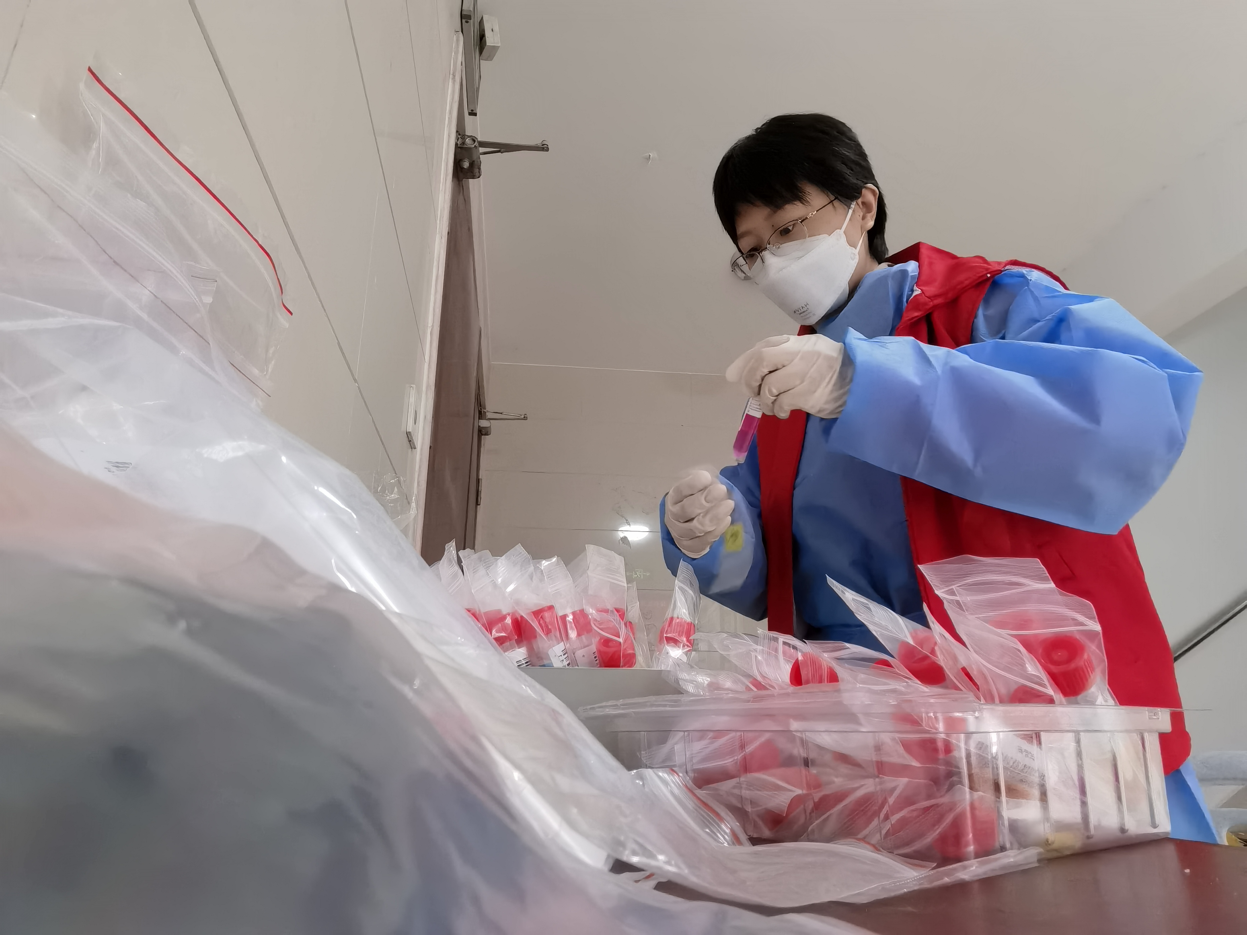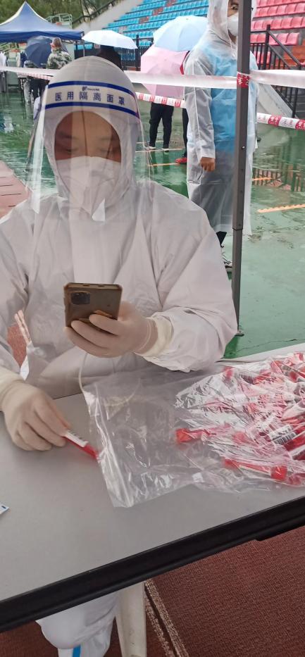 她就是我院曾雅琴老师,一天早上,她到万里村核酸检测点核酸采样时,看见检测点前去采样的群众多,就主动请缨,第一时间找工作人员报名当了志愿者。