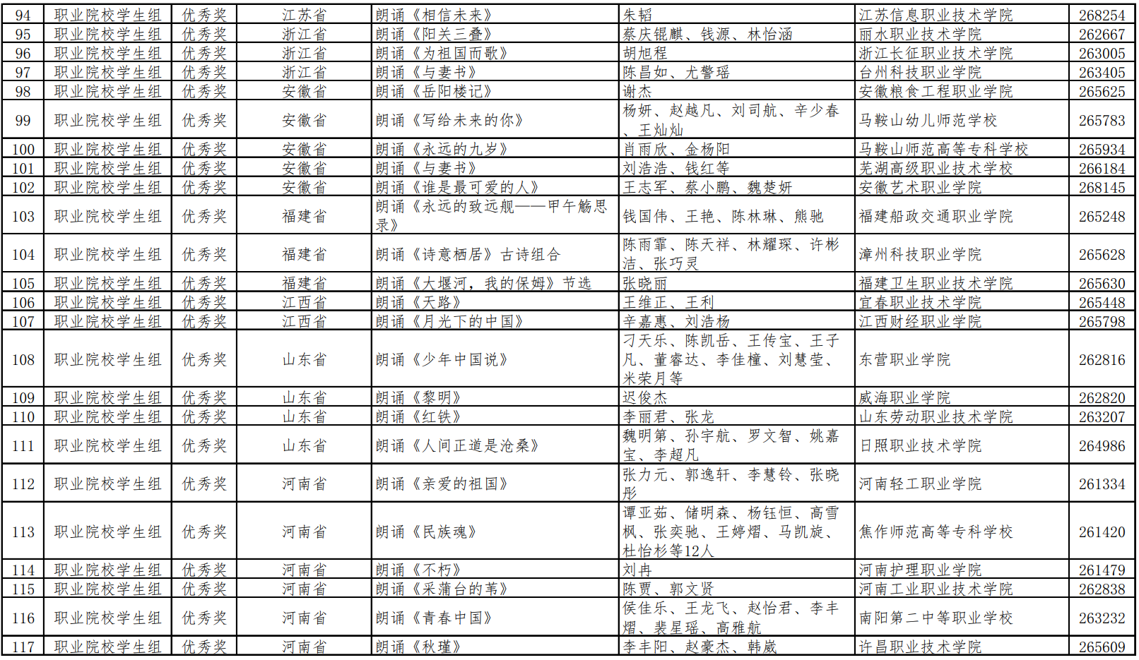2022年11月由我院教师于晓凌、吴婷婷指导参赛的作品《永远的致远舰》被福建省教育厅选送参加全国第四届中华经典诵写讲大赛“诵读中国”经典诵读大赛,据悉,福建省此次共选送十支高职院校队伍参加全国大赛。经过激烈的角逐,我校作品获得全国优秀奖。