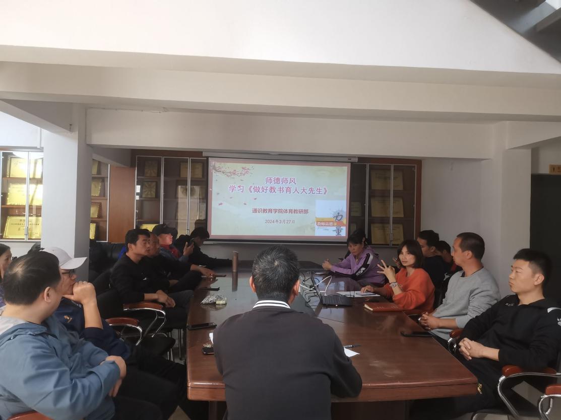 3月27日下午,通识教育学院各教研室组织学习《中华人民共和国爱国主义教育法》、《事业单位工作人员处分规定》和《做好教书育人大先生》,引导全体教师提高个人综合素质,夯实教育教学基本功,进一步加强新时代爱国主义教育,传承和弘扬爱国主义精神。