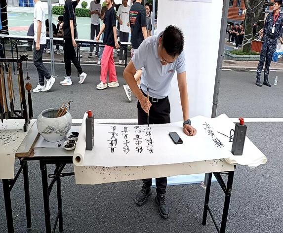 活动展示学生书法作品,在场师生赞赏不已,纷纷表示要学习书法技艺,成为新时代书法艺术的传承者。在活动现场,师生共同在宣纸上劲笔书写青春风采,呈现船政学子扎实的书法功底,彰显了对书法艺术的独特见解和创新精神,体现对传统文化的热爱和追求,展示“工匠”精神。