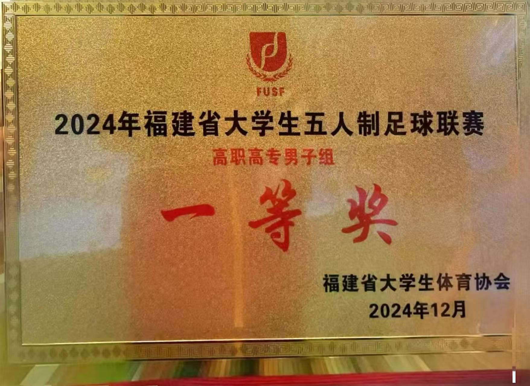 近日,2024年福建省大学生五人制足球联赛暨2024年福建省高校教工五人制足球联赛落下帷幕。本次活动由福建省大学生体育协会主办,福建省大学生体育协会足球分会承办,全省各高校40多支代表队、600多名运动员参赛,比赛分为校园男女组、体育专业男子组、高职高专男子组和高校教工等五个组别。福建船政交通职业学院男子足球队喜获高职高专男子组第一名,并获评体育道德风尚奖。