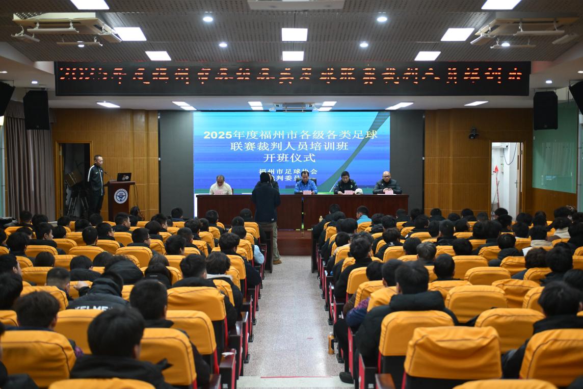 2025年2月23日,由福州市足球协会主办、福建船政交通职业学院承办的“2025年度福州市各级各类足球联赛裁判员培训班”在福建船政交通职业学院顺利举行。国际足联、亚足联、中国足协裁判员讲师、前亚洲金旗刘铁军,福州市足协常务副主席谢建民,福州市足球协会副主席任林峰以及全市150多名裁判员及监督人员参加了开幕式,通识教育学院院长郭建忠出席开幕式并致辞,为本次培训拉开序幕。
