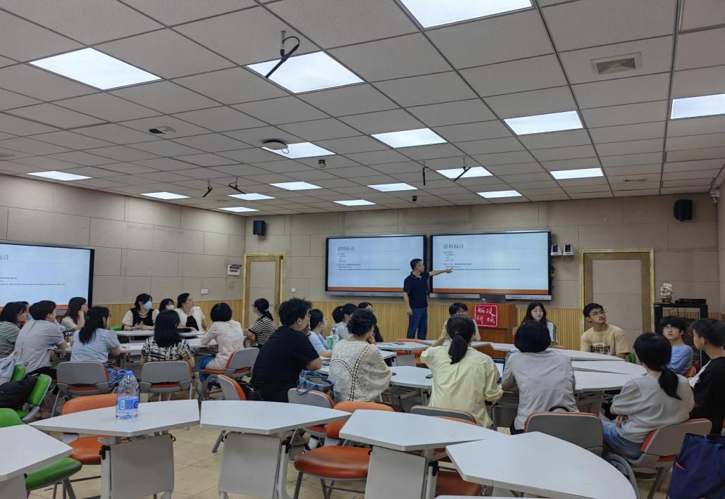 邓老师首先介绍了语料库的基本概念,包括语料库的定义、类型和特点,让师生们对语料库有了全面的认识。他认为,语料库作为语言研究的重要工具,能够为语言研究提供真实、可靠的语言数据,助力深入探索语言规律。同时,他通过展示多个语料库的实际案例,生动呈现了如何运用语料库进行数据分析,挖掘语言现象背后的深层规律,使抽象的理论变得直观易懂。