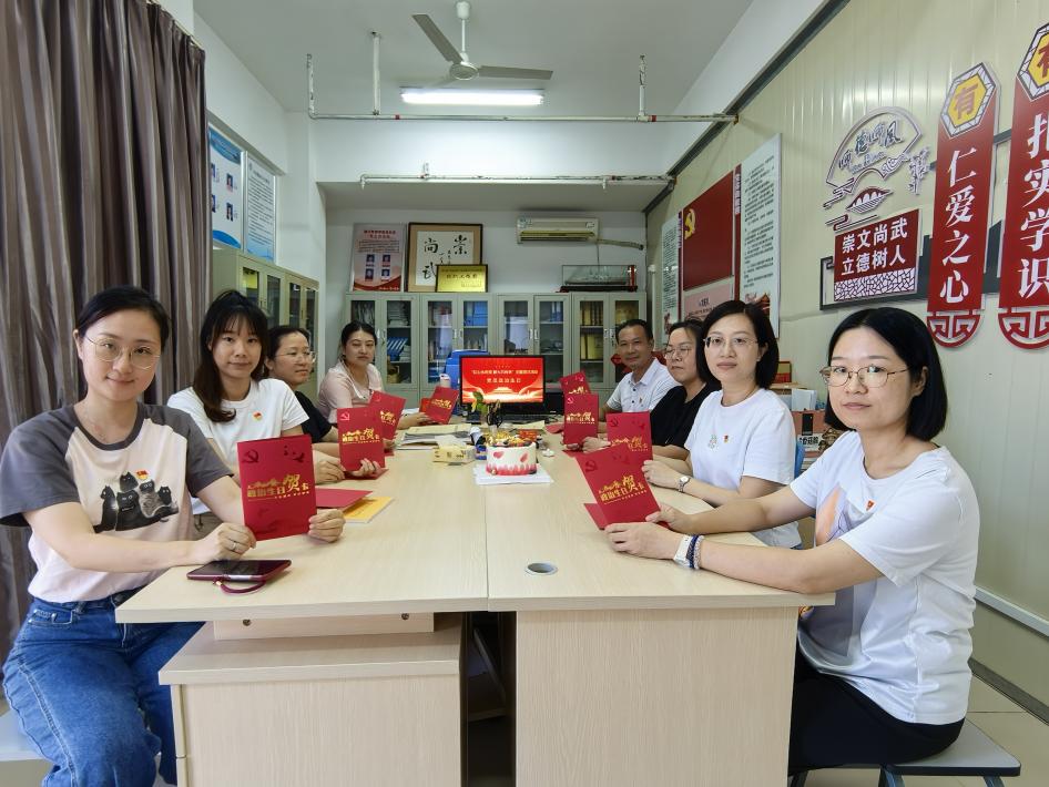 活动中,在党总支书记陈火城的领誓下,全体党员重温入党誓词,以庄严仪式回溯初心使命。蒋晓红代表结合教育岗位实践发表感言,表示将以立德树人为己任,将入党誓言转化为培养时代新人的实际行动。活动还特别设置“红色基因代代传”环节,播放支部此前赴高盖山烈士墓园开展清明祭扫的影像资料,引导党员在历史与现实的联结中坚定理想信念。
