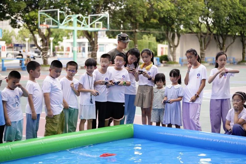 丰富多彩、手脑并用的研学实践让孩子们沉浸于趣味盎然的科学实验世界。“火山喷发”“声光电” 互动式探究性实验,激发孩子们科学兴趣;飞机结构、飞行原理、不同机型用途讲解,橡皮筋动力飞机模型制作,探索解码飞机飞行与设计奥秘;科创手工船舶制作和动力艇操控带来“小航模-大国防”的生动体验,让孩子们在创新思想与工程思维的碰撞激荡中,提升科学素养,培育科创思维和工匠精神。