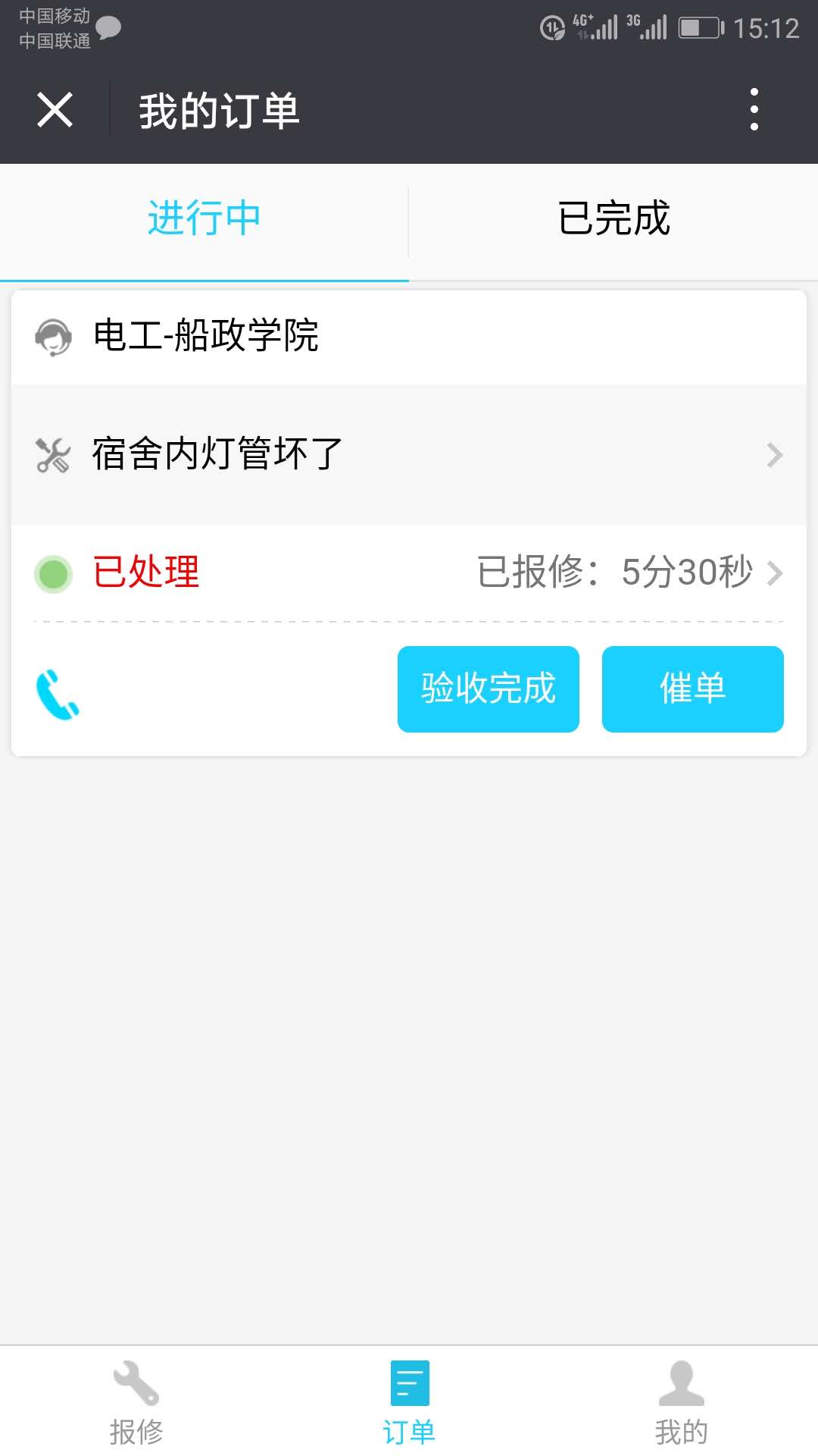 4、 师傅上门维修完成后点击验收完成后确认已完成。