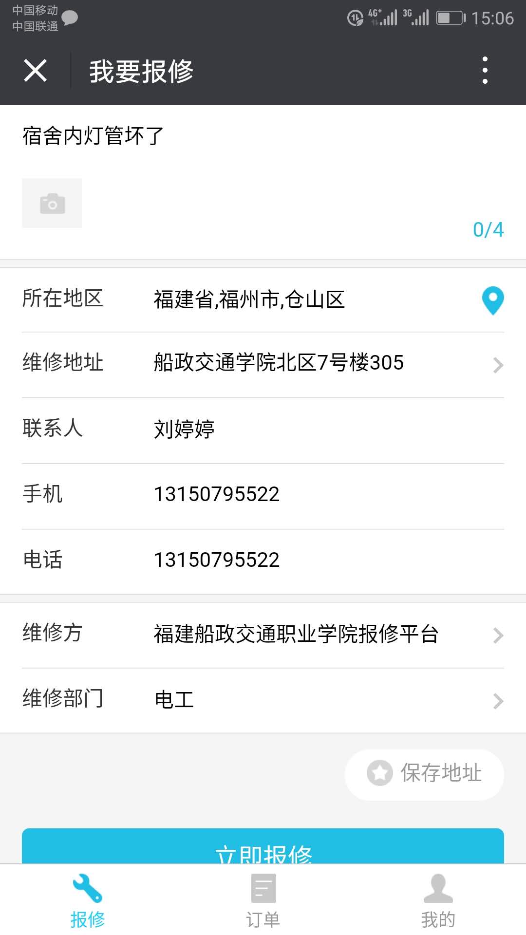 2、进入报修页面,填写报修内容后点击立即报修。(如图)