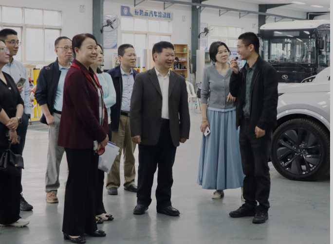 伍南腾主席一行先后察看新能源汽车产教融合示范园、艺新楼,听取学院融入区域经济社会发展、对接产业需要、产教融合培养人才的情况介绍,并就推进市域产教联合体建设听取学院方面意见建议。