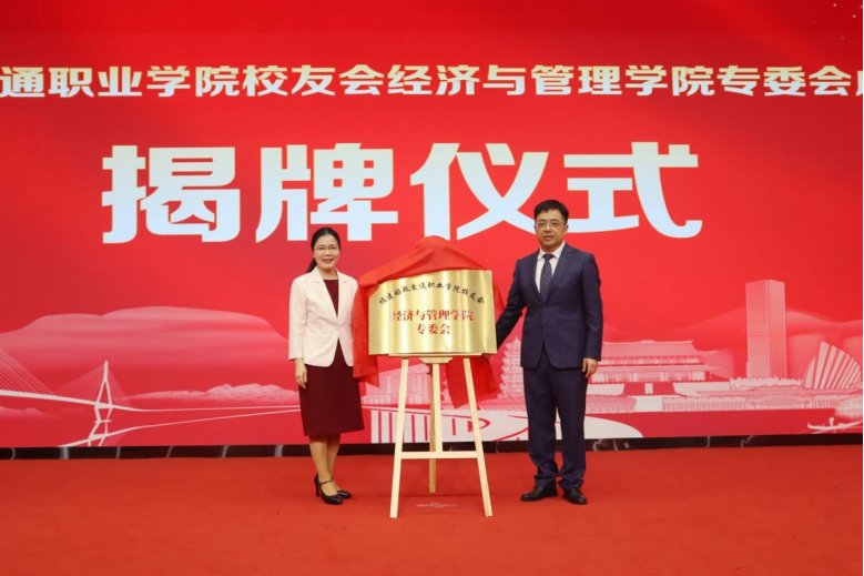 学院党委委员、副院长、校友会会长陈艳红,经济与管理学院院长房曰荣为福建船政交通职业学院校友会经济与管理学院专委会成立进行揭牌。