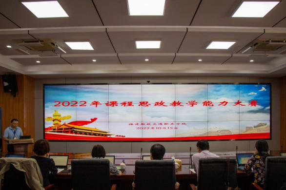为持续推进我院课程思政建设工作,落实好“立德树人”根本任务,10月15日,我院在行政楼六楼第一会议室组织举办了2022年课程思政教学能力大赛决赛。学院副院长张祖柱教授、厦门理工学院陈文哲教授、福州大学祁皑教授、福建中医药大学许克祥研究员、福建师范大学陈新星副教授、闽江学院阮晓莺教授、福建教育学院邰鹭明教授和我院李斌教授出席,各二级学院院领导、教研室主任和教师代表共100多人参加了观摩学习。