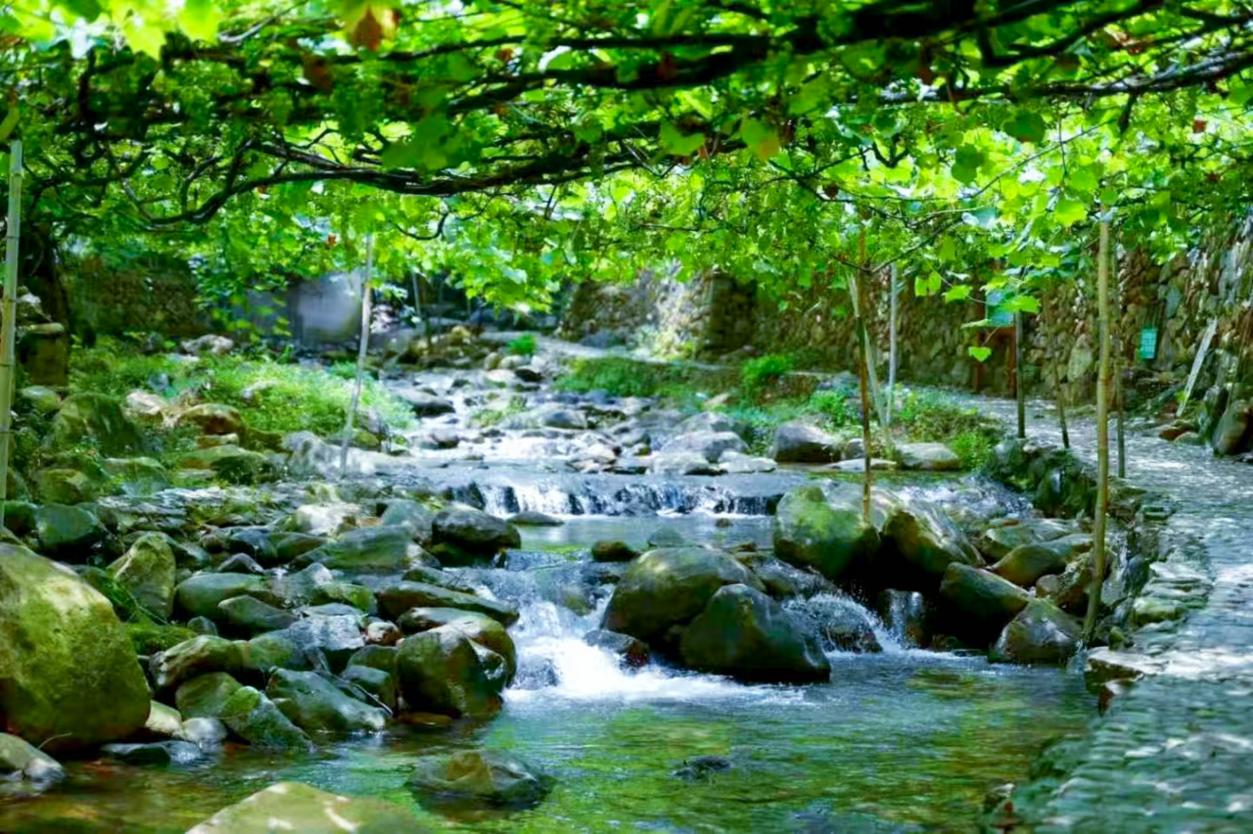 溪塔村,一个镶嵌在青山绿水间的畲族古村落,这里不仅自然风光旖旎,更蕴藏着丰富的畲族文化瑰宝。溪塔之地,刺葡萄与水蜜桃产业蔚然兴盛。当地人深谙因地制宜之道,于溪面巧设铁丝网架,引刺葡萄藤蔓沿架攀援,枝蔓交缠、绿叶相覆,最终形成 “沟上绿荫蔽日,沟下流水淙淙” 的独特景致。