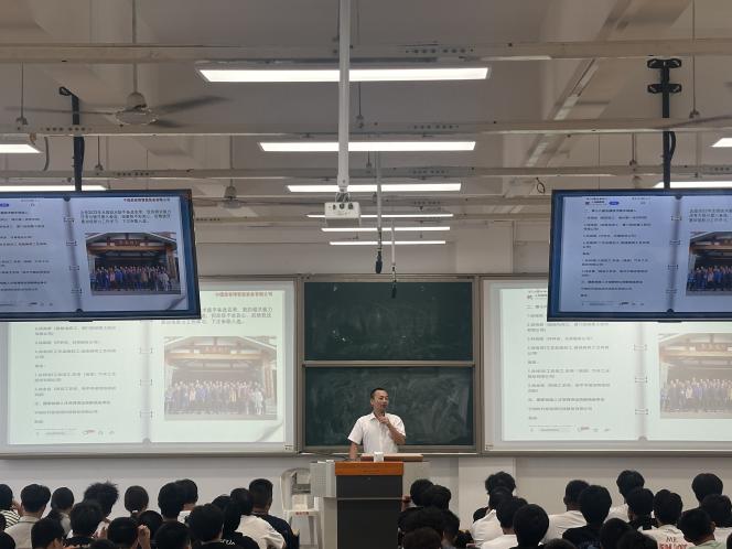 福建省劳模、福建省技能大师、宁德思客琦智能装备有限公司制造中心总监孙梓清作为企业代表,以“弘扬劳模工匠精神:平凡的工作岗位也能创造不平凡的人生”为主题,结合自身成长经历,阐述了在智能制造行业中脚踏实地、精益求精的重要性。并分享了三点体会,脚踏实地,筑牢专业根基;勇于实践,参与项目与竞赛;坚守匠心,追求卓越。他鼓励同学们在今后的学习中,要树立清晰目标,保持热爱与专注,传承工匠精神,追求卓越,将来成为推动行业进步的新一代工匠。