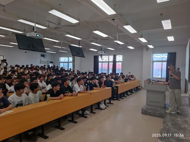 2025年9月17日,工业机器人技术专业教研室组织2025级249名新生于北区26号楼602教室举办专业介绍会,由教研室主任高华主持,教研室全体教师出席,并邀请校企合作企业宁德思客琦智能装备有限公司代表和大三学生代表参加。介绍会旨在帮助新生全面了解专业内涵、树立学习目标、科学规划学业与职业发展,共分为专业介绍、企业专家讲座和世赛金奖学生分享三个环节。
