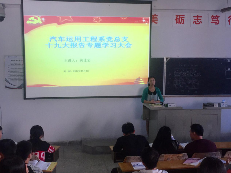 为了更好的学习党的十九大精神,我系开展了关于学习党的十九大报告专题学习大会,会上由我系第一党支部书记黄佳莹老师主持,学习大会期间同学们对党的十九大报告的精神积极提问,踊跃作答。深刻领会到了习近平新时代中国特色社会主义思想的历史地位和丰富内涵。也更加清楚的了解了党的十八大以来党和国家事业发生的历史性变革。
