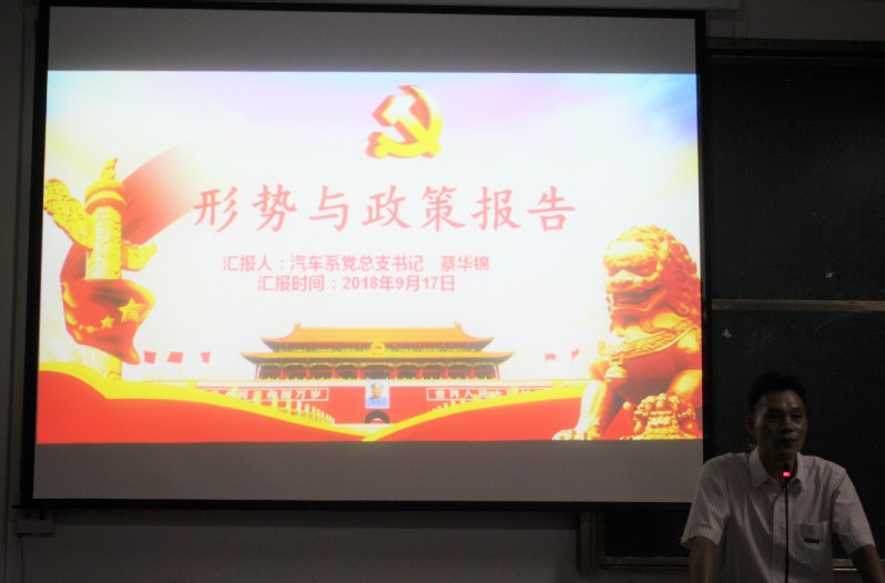 2018年9月17日,在福建船政交通职业学院北区22号楼407教室进行了“用新思想武装头脑 在新时代书写人生华章”的报告。参加了报告的有汽车系教工党员代表以及各班临时负责人、优秀学生代表。报告由汽车系总支部书记蔡华锦同志主持。