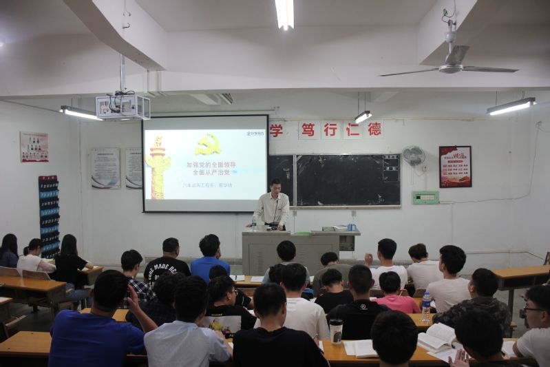 2019年4月8日晚19:00,汽车运用工程系在一阶教室举办了高校“形势与政策”课全面从严治党专题讲座。讲座由汽车运用工程系党总支书记蔡华锦主讲,110名学生参加了讲座。