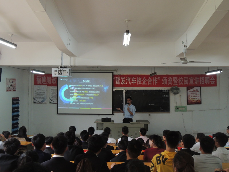 颁奖活动结束后,厦门建发汽车面向全系师生做了企业宣讲。来自厦门、福州、泉州、漳州等地建发旗下不同品牌的经销店为17级汽车专业学生提供汽车机电维修、汽车销售、售后服务等诸多岗位实习机会,学生毕业即就业, 实现了学生学习与工作岗位需求零距离对接。