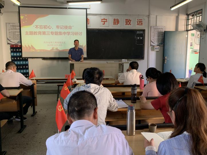 为贯彻落实学院“不忘初心、牢记使命”主题教育方案和学院党委的部署安排,按照汽车运用工程系党总支“不忘初心、牢记使命”主题教育学习研讨安排,10月16日下午,系党总支召开主题教育第三专题集中学习研讨会。学院巡回指导二组组长王心金及系部全体教职工党员参加了会议。