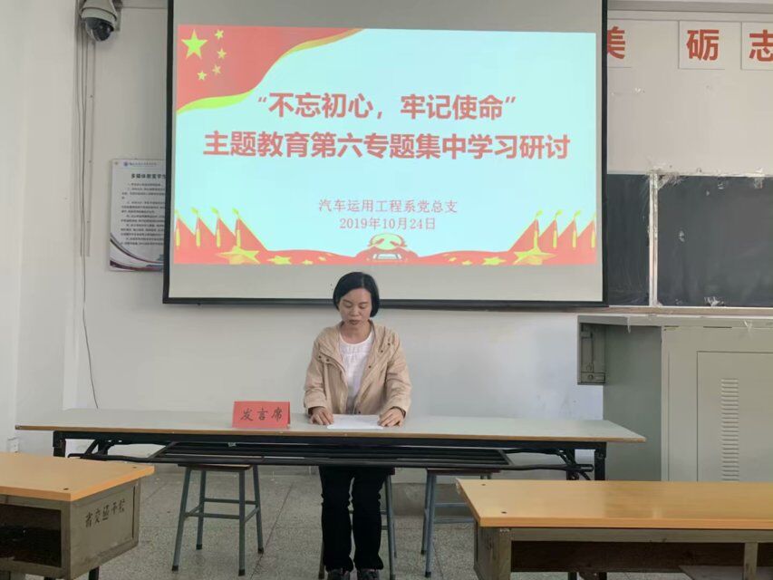 按照汽车运用工程系党总支“不忘初心、牢记使命”主题教育学习研讨安排,10月24日下午,系党总支召开主题教育第六专题集中学习研讨会。系部全体教职工党员参加了会议。