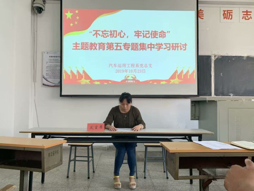按照汽车运用工程系党总支“不忘初心、牢记使命”主题教育学习研讨方案安排,10月23日下午,系党总支召开主题教育第五专题集中学习研讨会。系部全体教职工党员参加了会议。