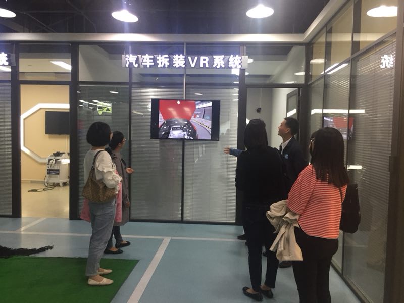 随后,我支部党员观看VR+行业应用体验馆。党员教师对叉车驾驶、汽车拆装VR系统、焊接VR系统、喷涂VR系统等行业尖端科技现场体验。将VR技术引入课堂,可以让学习变得直观、形象、生动,激发学生的学习兴趣和热情;将汽车拆装、焊接、涂装等课程结合VR技术,可以把汽车零件和焊接、涂装过程逼真地展示在学生眼前,提高学生的学习积极性和学习效果。