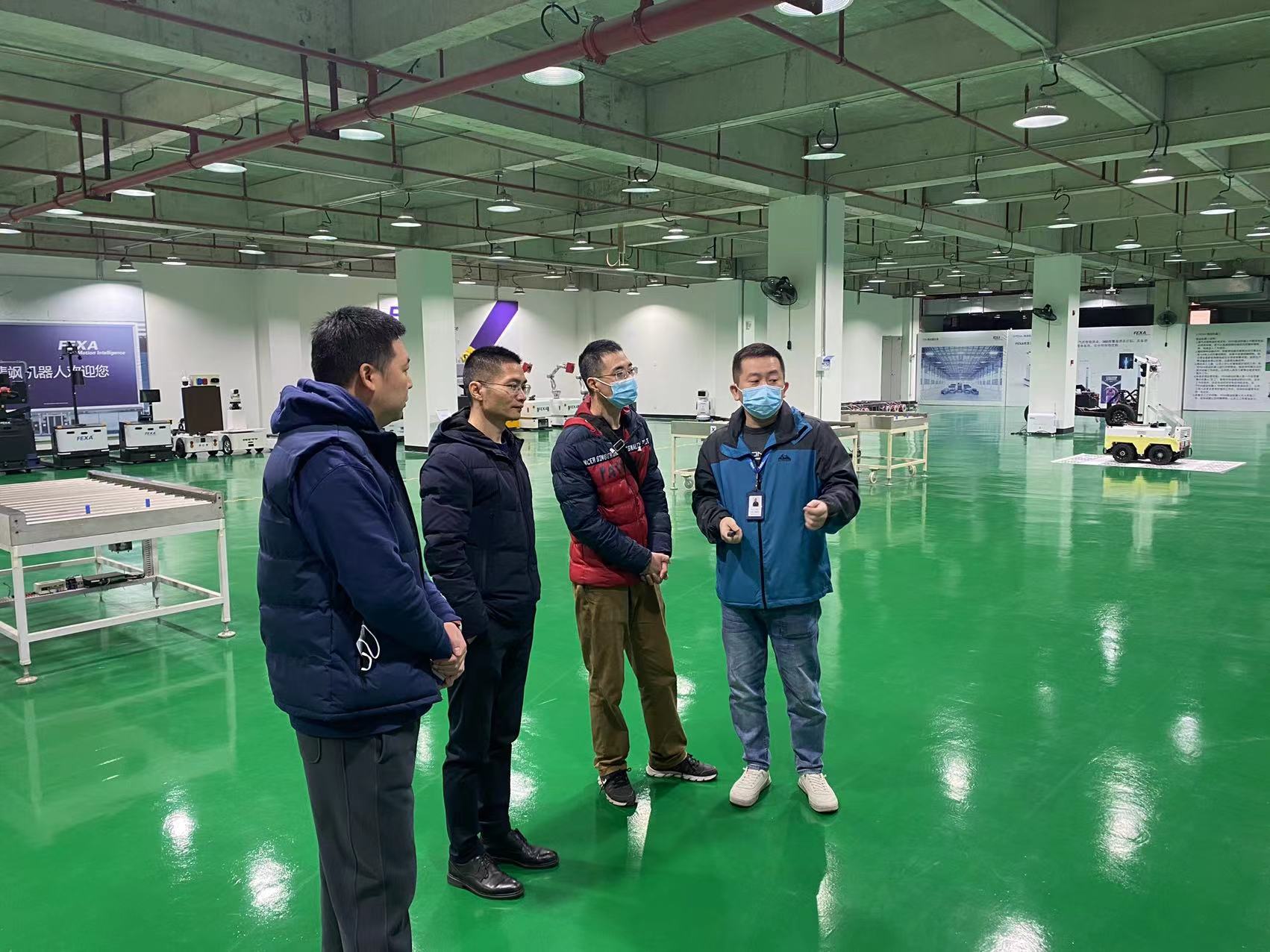 叶航董事长首先对我方的来访表示欢迎,并对斐飒(福建)科技有限公司及其主要产品和服务进行了简要介绍。斐飒(FEXA)公司是福勤智能科技(昆山)有限公司的全资子公司,是一家专注与智能制造装备及系统的开发研究和销售服务的高科技公司。 FEXA的产品和服务涵盖的领域主要包括:智能引导车辆(IGV)研发设计及系统集成、汽车生产流水线、新能源电池等流水线生产设备的设计、机器人系统集成等。叶航董事长表示希望依托双方校企资源优势,在汽车相关技术领域开展合作,促进双方的共同发展。
