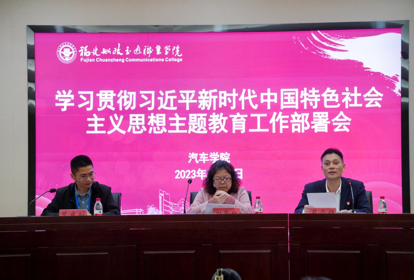 2023年4月26日下午,汽车学院在福船园艺新楼学术报告厅303召开学习贯彻习近平新时代中国特色社会主义思想主题教育工作部署会,学校主题教育协调推进二组组长纪委办公室副处级纪检员谢翠红、宣传统战部副部长林文昌及汽车学院全体党员参加了会议。